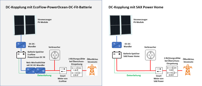 Lösung von EcoFlow: Die Installation von EcoFlow PowerOcean DC Fit ist im Vergleich zu herkömmlichen AC- oder DC-gekoppelten Systemen besonders unkompliziert. Die Batterien werden direkt an Ihr bestehendes Solarsystem auf der PV-Seite angeschlossen bzw. dazwischengeschaltet, ohne einen zusätzlichen Speicher-Wechselrichter zu installieren oder den bestehenden Solar-Wechselrichter auszutauschen.Dieser effiziente Ansatz spart Installationszeit. Auch 3-phasige Wechselrichter können weiterverwendet werden. Die Lösung erspart auch das Warten auf eine Anschluss-Genehmigung durch den Netzbetreiber.